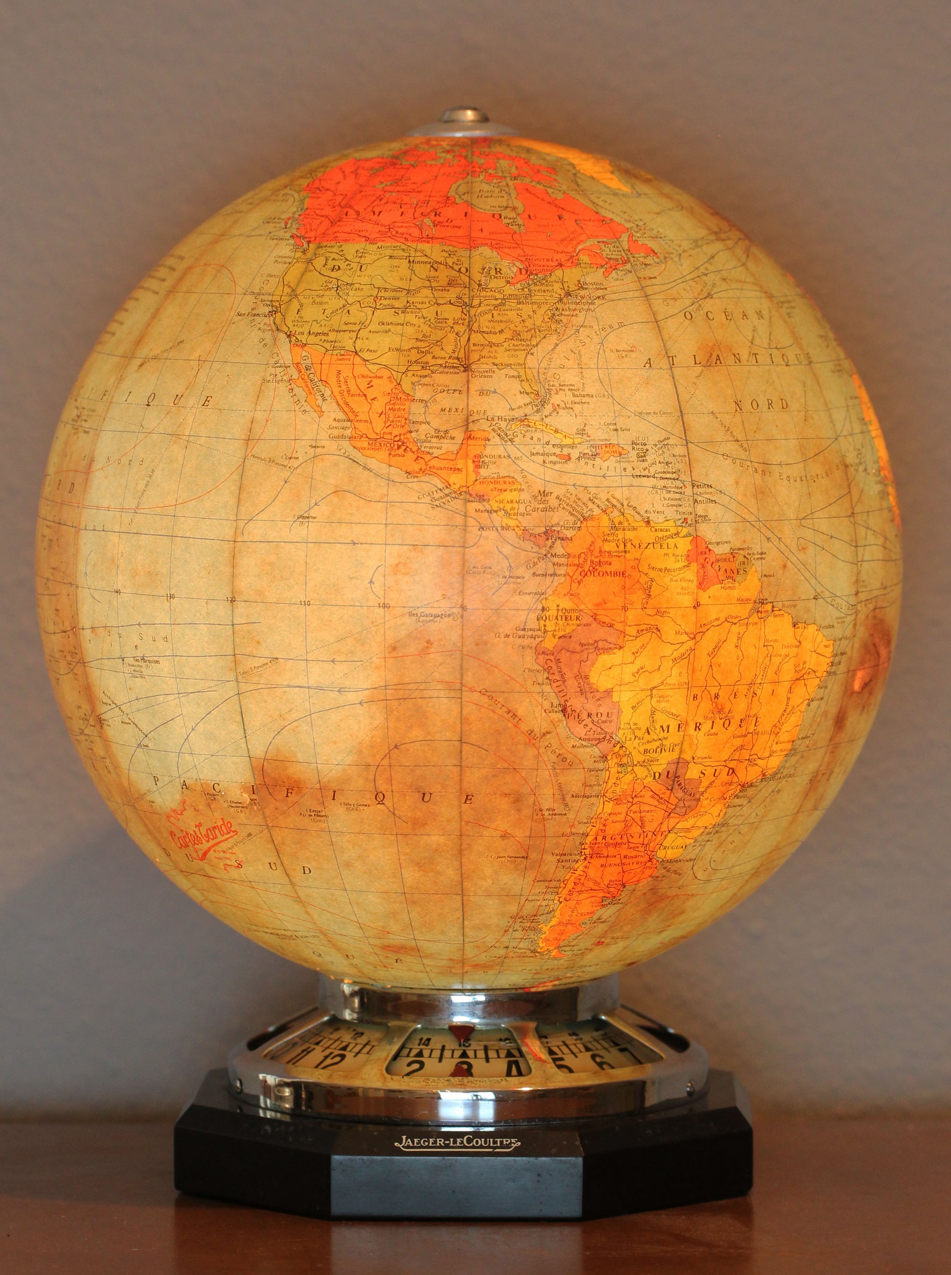 Jaeger LeCoultre illuminated world globe table clock from 1935